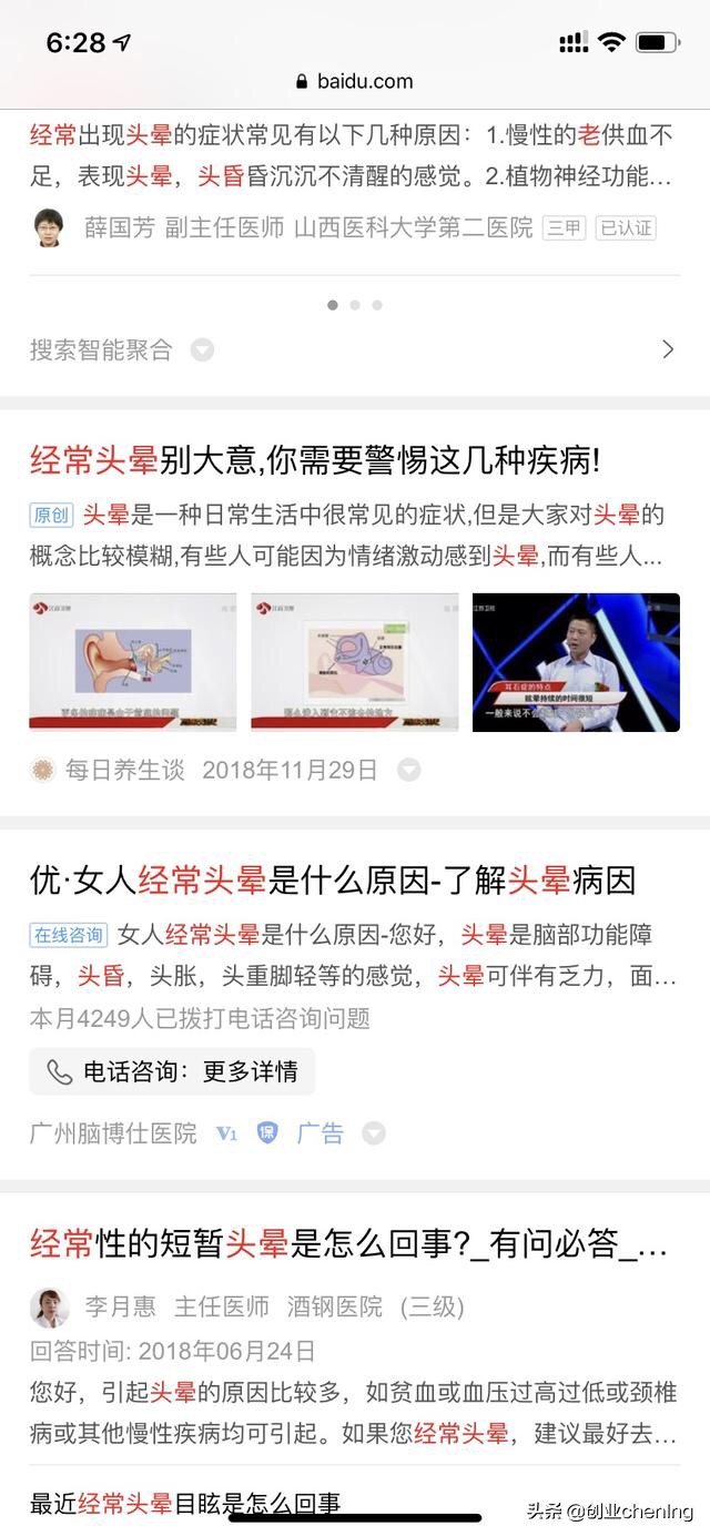 相比起百度(后面用BD代替)搜索,头条搜索要简单不少,以官方网页和头条资讯内容为主。小编在两个搜索引擎搜索「iPhone」,头条搜索引擎只会出现头条号文章和苹果官方网站。而BD搜索,除了会出现苹果官方网站之外,还会出现购物相关的推广(百度的搜索智能聚合)。为了进一步验证,小编又同时在两个搜索引擎搜索「iPhone电池」,此时BD出现了广告,而头条搜索则全是头条号文章内容。至于大家比较敏感和关注的医疗相关的问题,小编也有尝试搜索。同时搜索「经常头晕」,BD除了会出现医疗网站资讯内容之外,还夹了一个医疗广告,而头条搜索则清一色显示医疗网站的资讯内容(非广告),如寻医问药、有来医生等等。