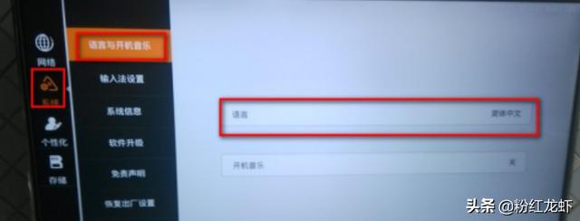 2、在“设置”中找到“系统设置”中可以看到有“语言和开机音乐”。